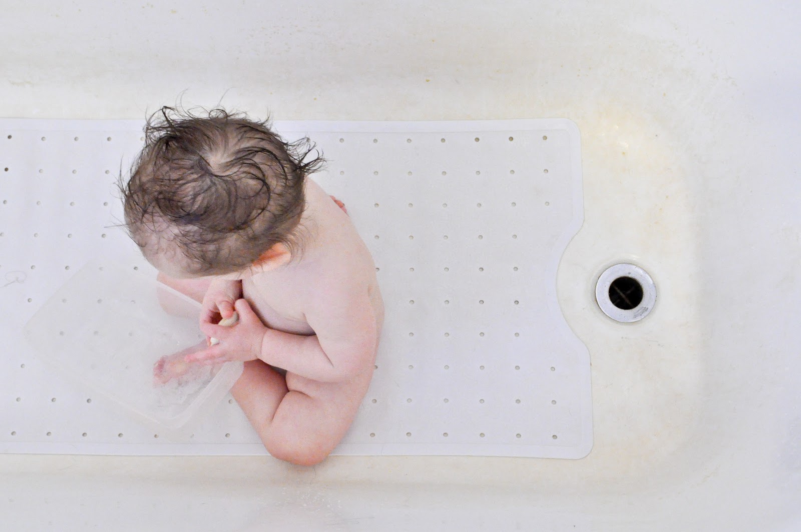 Most of the time he refuses to get out, even when all the water has disappeared down the drain.